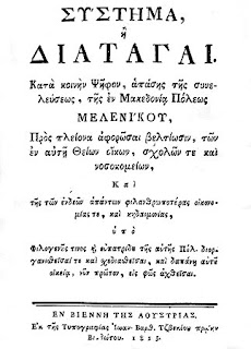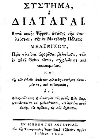 Πρός Πλείονα άφορώσαι βελτίωσιν, τών έν αυτή Θείων οίκων, Σχολών τε καϊ Νοσοκομείων,